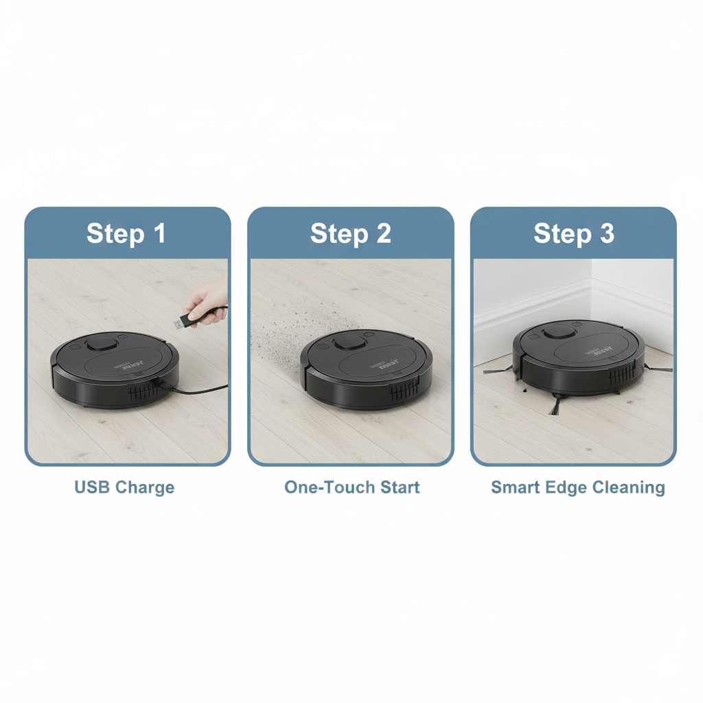 Using the Auronva USB Charging Vacuum Cleaner Robot is simple and hassle-free. This smart cleaning tool is designed to make your life easier with its intuitive features and convenient USB charging capability. Here’s a step-by-step guide on how to use your USB Charging Vacuum Cleaner Robot for efficient, automated cleaning.